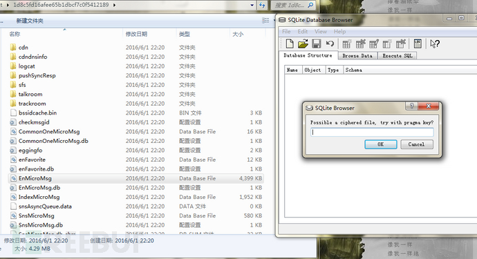 成功打开微信的数据库文件: