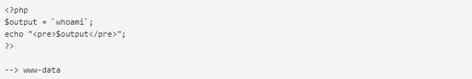 很多PHP开发人员并没有意识到这一点,但是PHP会首先执行shell命令中倒引号(`)内的内容。请注意,倒引号(`)和单引号(’)不同。