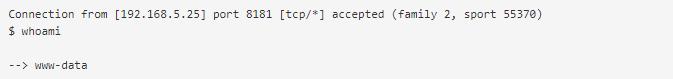 在源计算机上,我们在端口8181上设置了Netcat侦听器。
