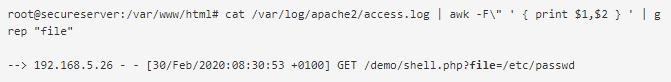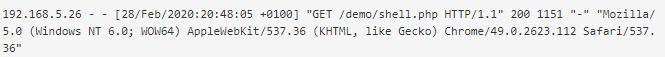首先,必须针对Webshell正在使用的常见关键字过滤服务器访问和错误日志,包括文件名称和/或参数名称。您可根据下面的示例,在Apache HTTP Server访问日志中的URL中搜索字符串文件。