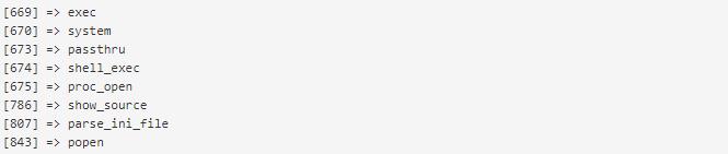 我们已经确定了这些函数(以及其他一些函数)可能非常危险。更危险的是,在安装PHP时,默认情况下会启用所有这些内置PHP命令,而大多数系统管理员不会禁用这些函数。如果不确定在系统上是否启用了这些函数,输入以下内容将返回已启用的危险函数的列表。