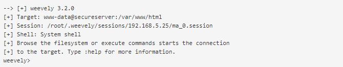 我们以Weevely为例,来分析Webshell是如何使用的。Weevely是一个类似PHP telnet的轻量级Webshell,具有多个选项,在本示例中我们将使用这些选项。