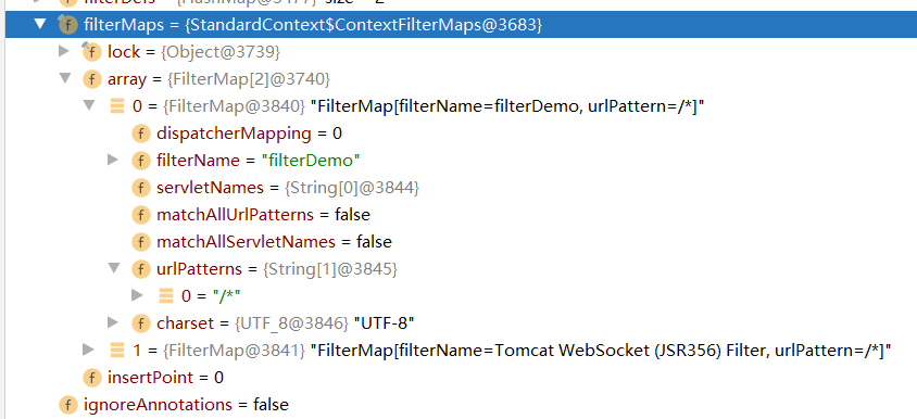 FilterMaps则对应了web.xml中配置的<filter-mapping>,里面代表了各个filter之间的调用顺序。