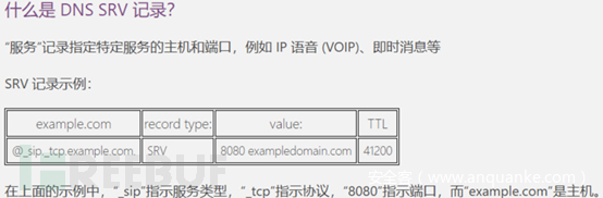 | SRV | 记录指定特定服务的主机和端口 |