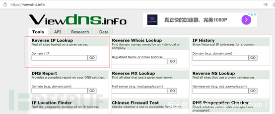 获取域名或者IP地址,并进行反向查找以快速显示同一服务器承载的所有其他域。
