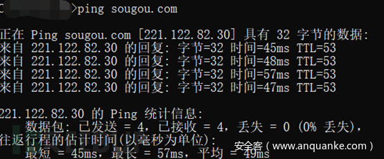 如果目标网站没有使用CDN的话,这里要想获得目标网站真实的IP地址就很简单了。可以直接在cmd中利用ping获取目标IP地址,也可以使用刚刚的在线ping网站:http://ping.chinaz.com