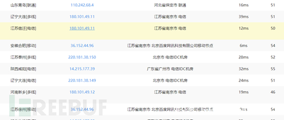 使用不同的Ping服务器,响应的IP地址是相同的。不同的监测点相应的IP地址相同,由此可以推断当前网站没有使用CDN技术。