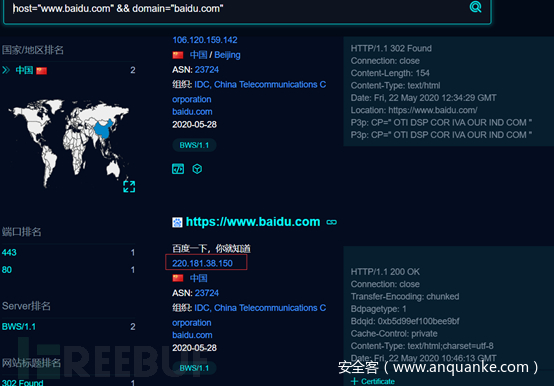用到的语法为host="www.baidu.com" && domain="baidu.com"